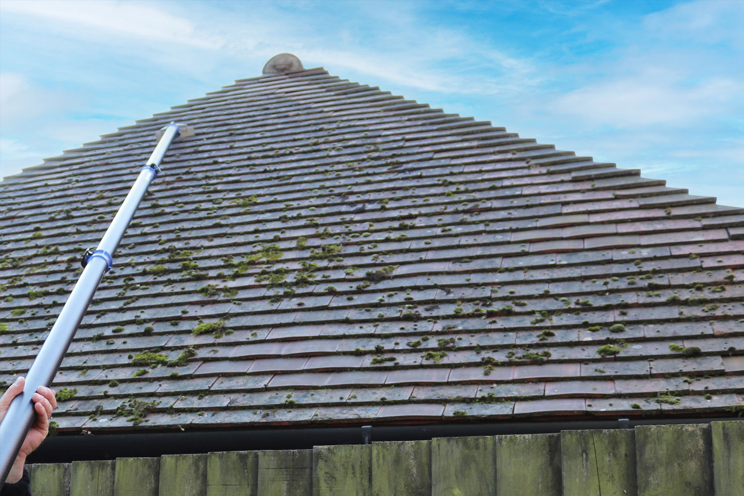 Gardens in Kent can experience seasonal leaf fall, dust, and organic matter that gradually builds up on artificial grass surfaces. In damp areas or shaded gardens, moss and algae may also begin to develop if the lawn is not cleaned regularly.